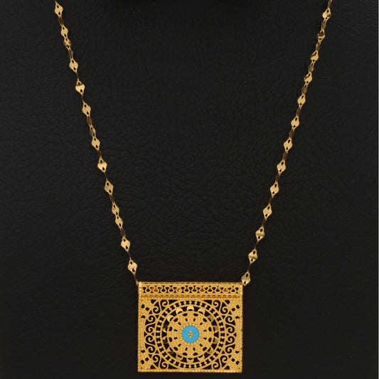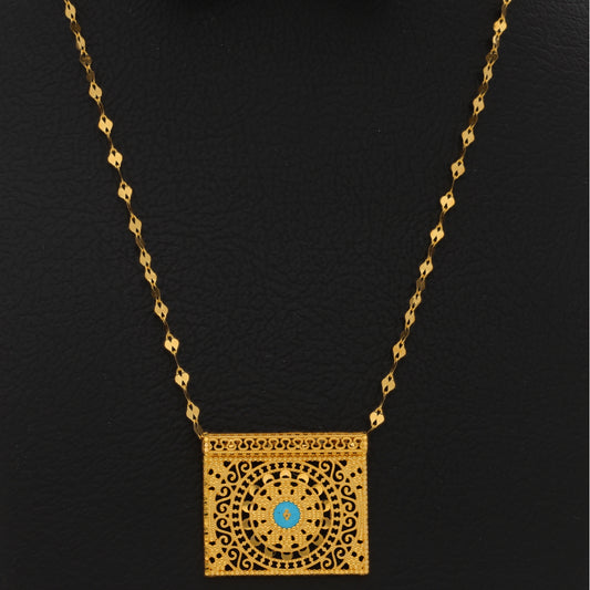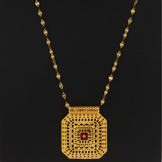 Gold Necklace (Chain With Intricate Rectangle Shaped Pendant) 21KT - FKJNKL21KM9880