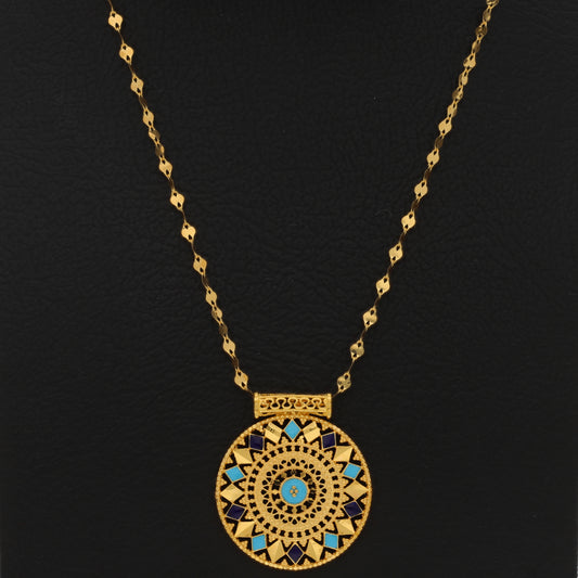 Gold Necklace (Chain With Intricate Round Shaped Pendant) 21KT - FKJNKL21KM9879