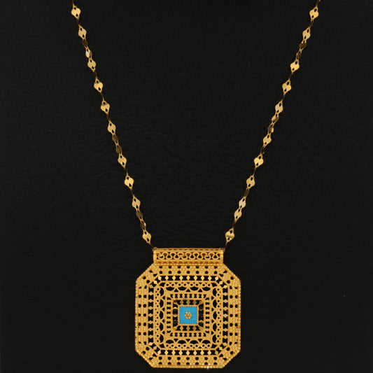 Gold Necklace (Chain With Intricate Rectangle Shaped Pendant) 21KT - FKJNKL21KM9878