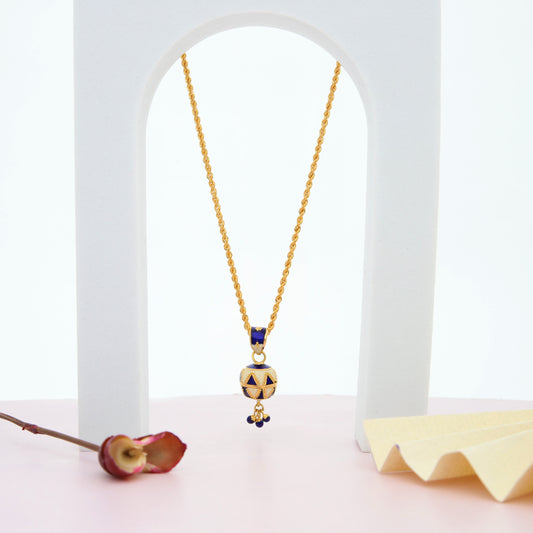 Gold Necklace (Chain With Hanging Dark Blue Ball Shaped Pendant) 21KT - FKJNKL21KM9939
