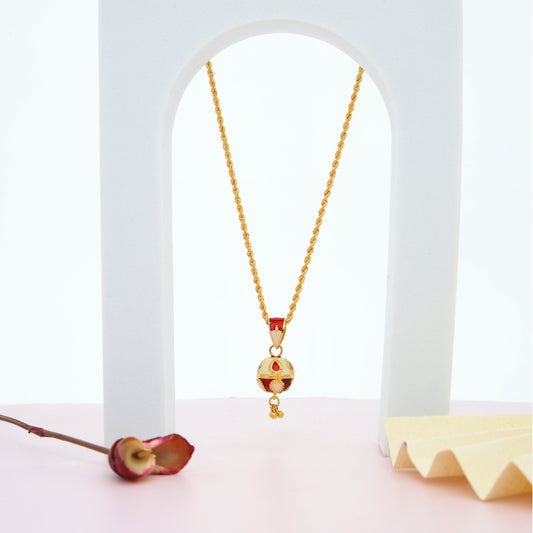 Gold Necklace (Chain With Hanging Red Ball Shaped Pendant) 21KT - FKJNKL21KM9940