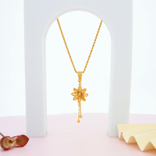 Gold Necklace (Chain With Hanging Flower Shaped Pendant) 21KT - FKJNKL21KM9941