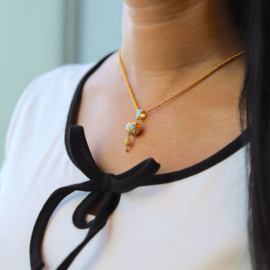Gold Necklace (Chain With Hanging Light Blue Ball Shaped Pendant) 21KT - FKJNKL21KM9938