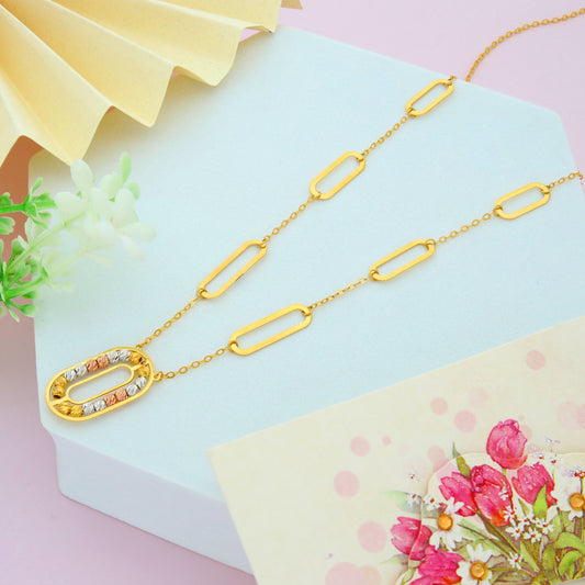 Gold Paperclip Shaped Pendant Set (Necklace, Bracelet and Earrings) 21KT - FKJNKLST21KM9859