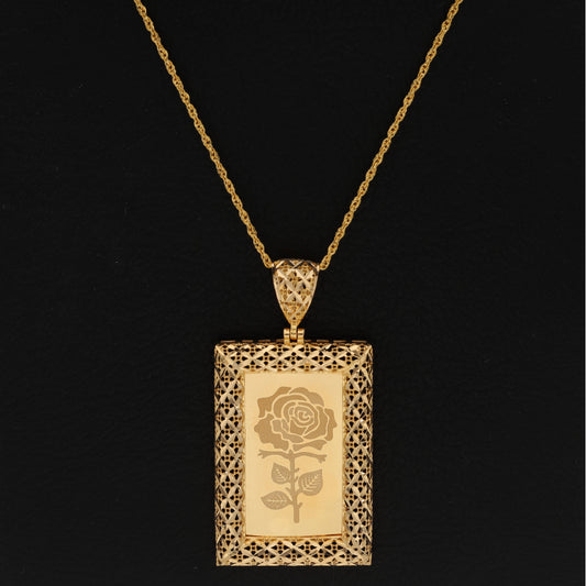 Gold Rectangle Shaped Rose Frame Pendant 21KT - FKJPND21KM9618