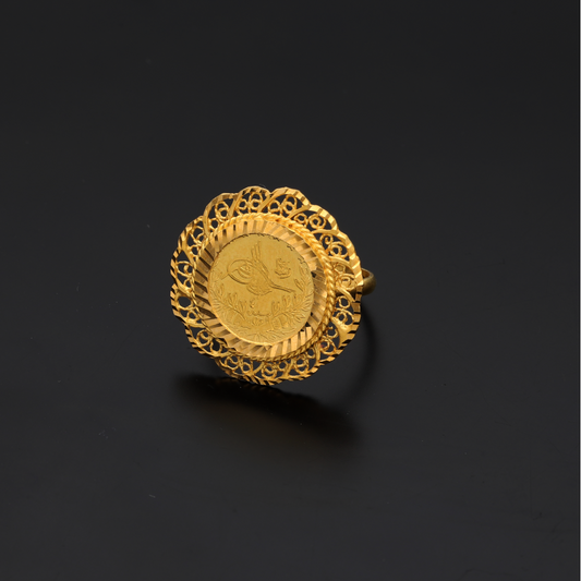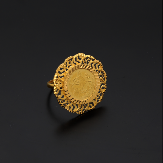 Gold Round Flower Shaped Ring 21KT - FKJRN21K9045