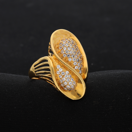 Gold CZ Unique Design Ring 21KT - FKJRN21K8852