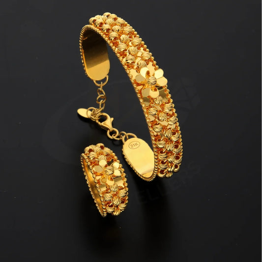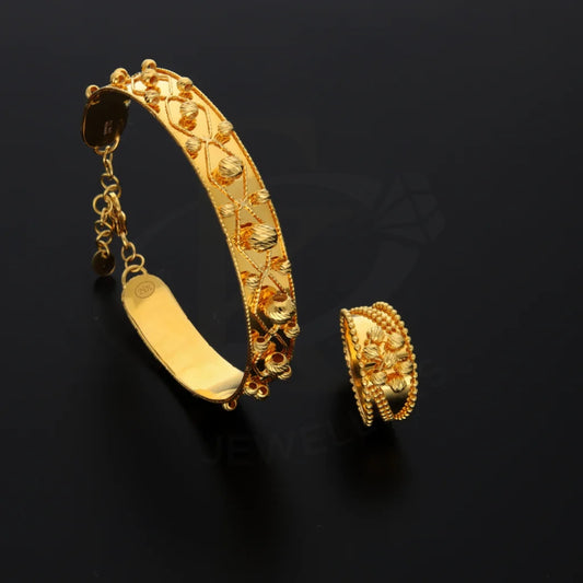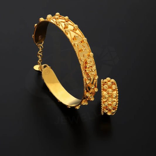 Gold Round Stud Ball Flower Design Bangle Set (Bangle and Ring) 21KT - FKJSET21KM8689