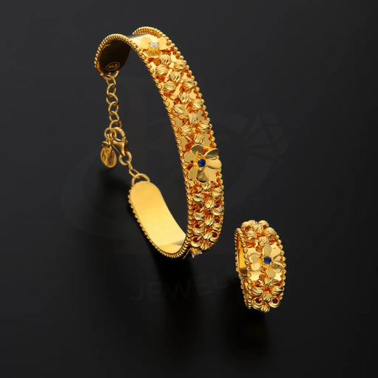 Gold Flower Stud Design Bangle Set (Bangle and Ring) 21KT - FKJSET21KM8685