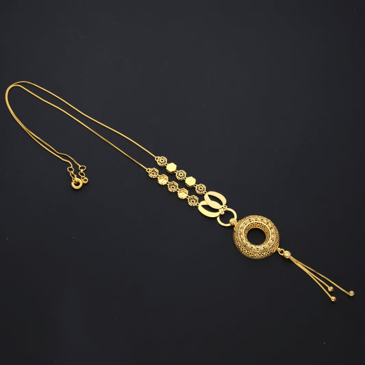 Gold Round Lira Drop Necklace 21KT - FKJNKL21KM10355