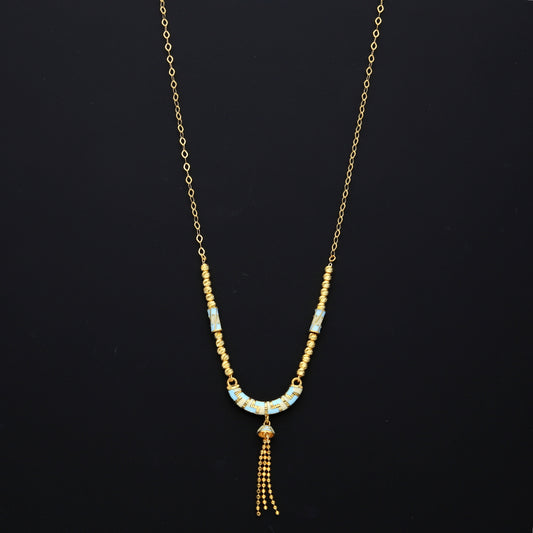 Gold Sky Blue Beaded Tassel Necklace 21KT - FKJNKL21KM10360