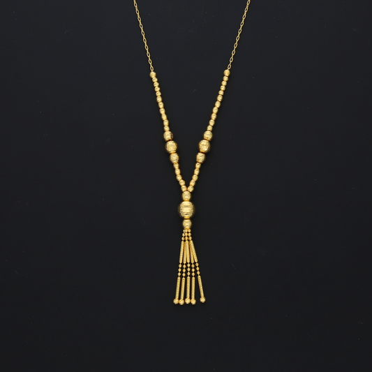 Gold Beaded Dangling Necklace 21KT - FKJNKL21KM10362