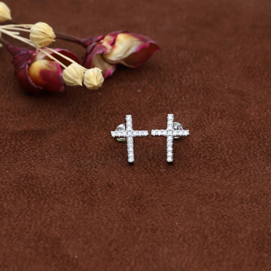 Sterling Silver 925 Cubic Zirconia Cross Shaped Earrings - FKJERNSL8006