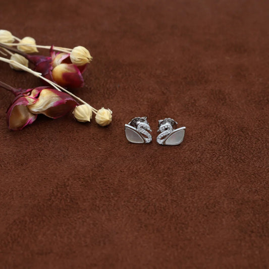 Sterling Silver 925 Simple and Elegant Swan Shaped Earrings - FKJERNSL8013