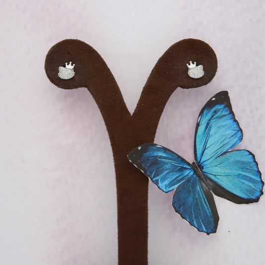 Sterling Silver 925 Cat with Crown Shaped Stud Earrings - FKJERNSL7976