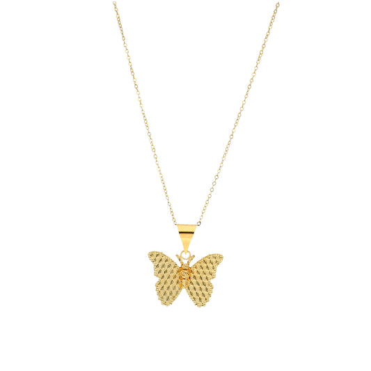 Gold Textured Butterfly Necklace 21KT - FKJNKL21KM11283