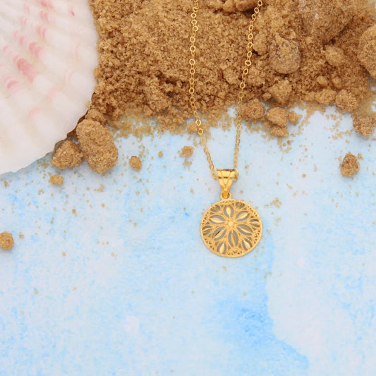 Gold Necklace (Chain With Striking Floral Mesh Pendant) 21KT - FKJNKL21KM7939