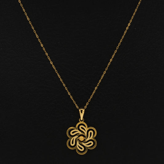 Gold Necklace (Chain With Hollow Flower Shaped Pendant) 21KT - FKJNKL21KM9830