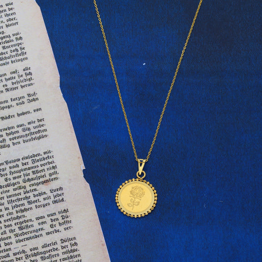 Gold Necklace (Chain With Rose Coin Shaped Pendant) 21KT - FKJNKL21KM10017