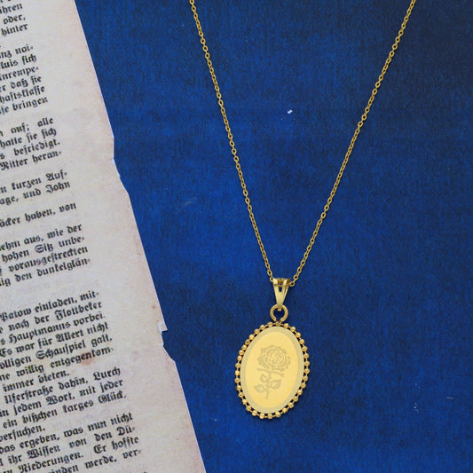Gold Necklace (Chain With Rose Oval Shaped Pendant) 21KT - FKJNKL21KM10018