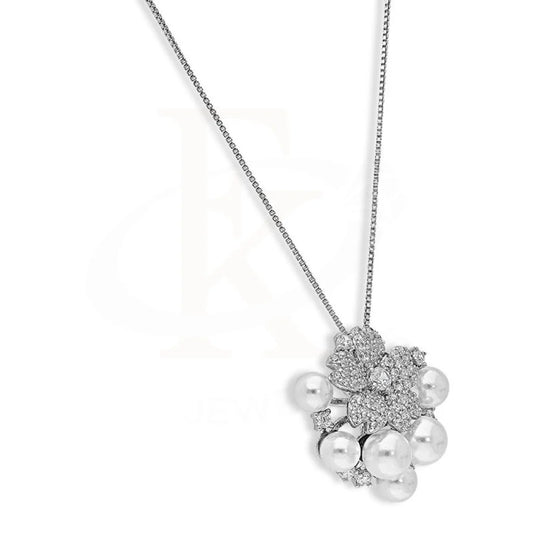 Sterling Silver 925 Flowers and Pearls Necklace (Chain with Pendant) - FKJNKLSL2275