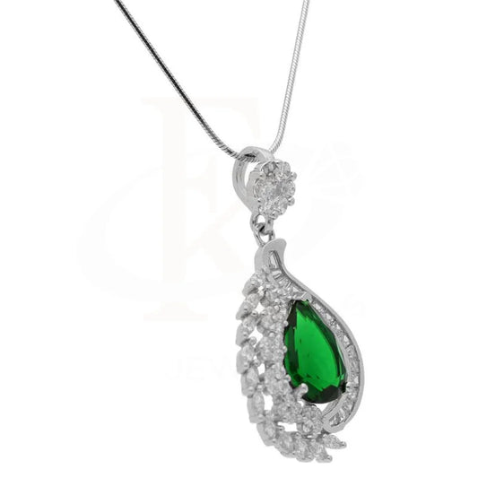 Sterling Silver 925 Green Solitaire Necklace (Chain with Pendant) - FKJNKLSL2073