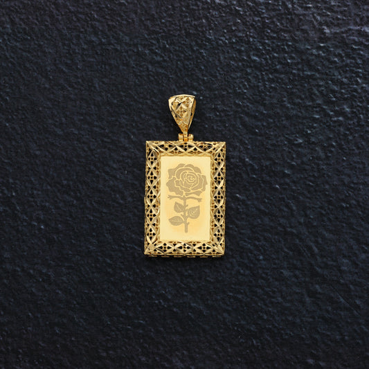 Gold Rectangle Shaped Rose Frame Pendant 21KT - FKJPND21KM9617
