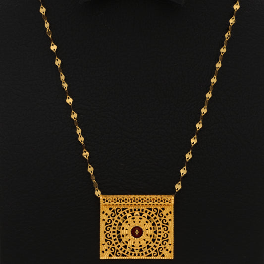 Gold Necklace (Chain With Intricate Rectangle Shaped Pendant) 21KT - FKJNKL21KM9880