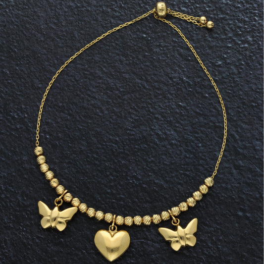 Gold Hanging Heart & Butterfly Shaped Bracelet 18KT - FKJBRL18K9426