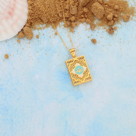 Gold Necklace (Chain With Allah Name Turquoise Blue Pendant) 21KT - FKJNKL21KM7944