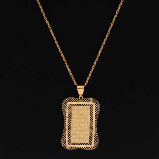Gold Necklace (Chain Hollow Rectangle Frame Shaped Ayatul Kursi Pendant) 21KT - FKJNKL21KM9622