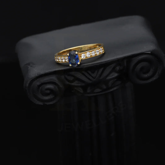 خاتم سوليتير ذهبي أزرق بيضاوي الشكل عيار 18 قيراطًا - FKJRN18K7895