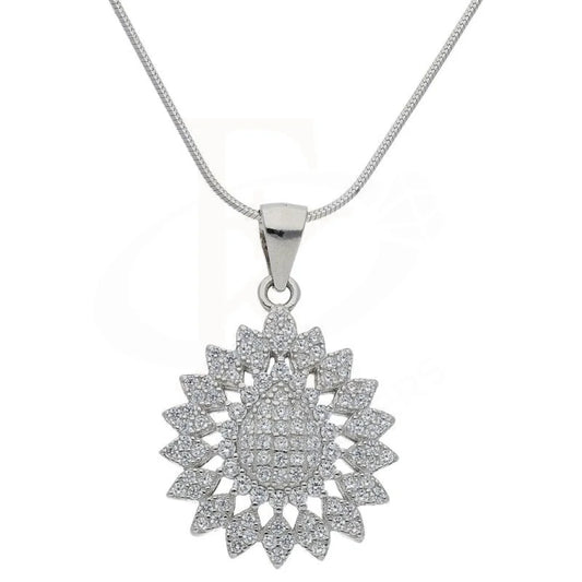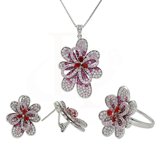 Sterling Silver 925 Flower Shaped Pendant Set (Necklace, Earrings and Ring) - FKJNKLSTSL2108