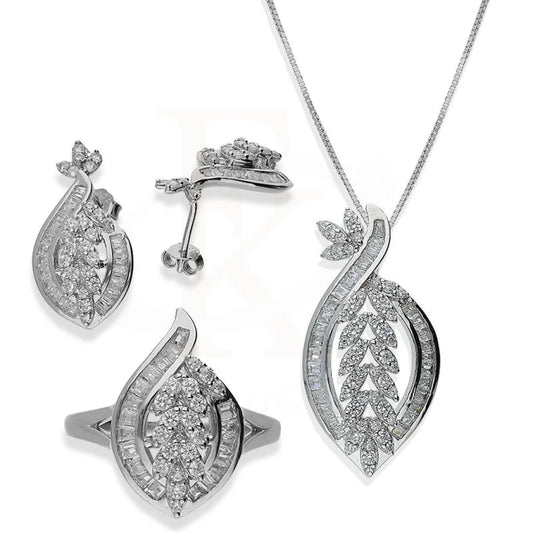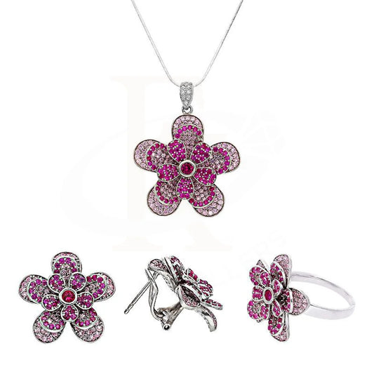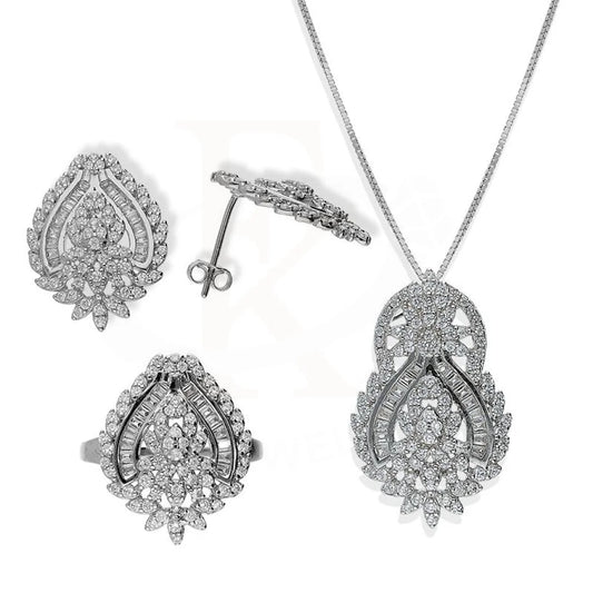 Sterling Silver 925 Pendant Set (Necklace, Earrings and Ring) - FKJNKLST2050