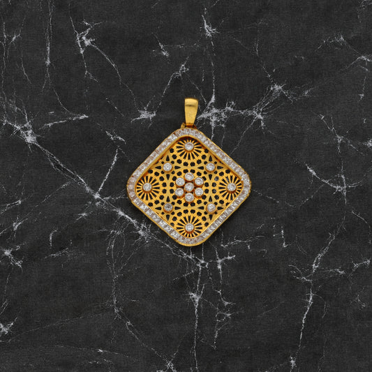 قلادة مربعة الشكل من الذهب عيار 21 قيراطًا مرصعة بالزركون - FKJPND21KM9946