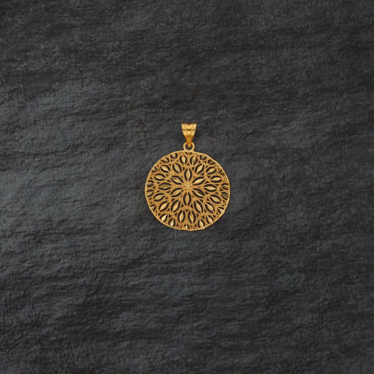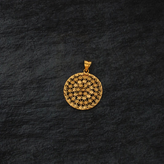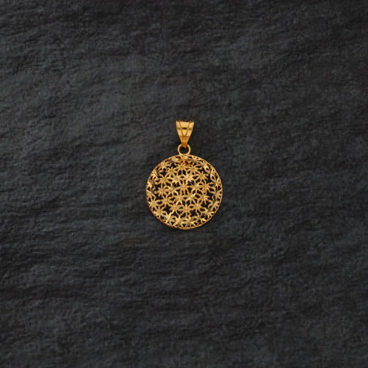 Gold Hollow Round Shaped Floral Pendant 21KT - FKJPND21KM7949