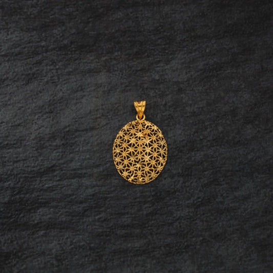Gold Oval Flower Design Pendant 21KT - FKJPND21KM8374