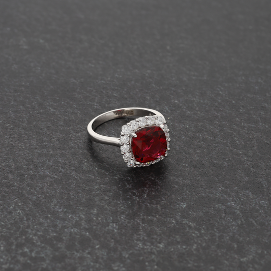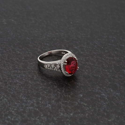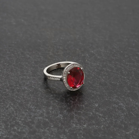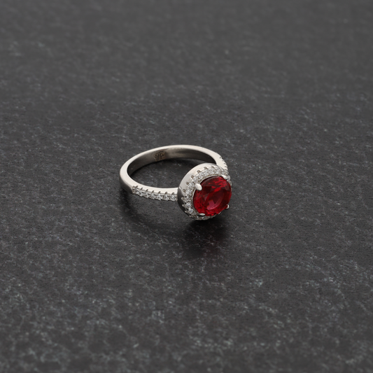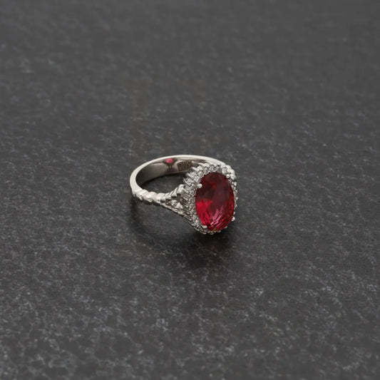 Sterling Silver 925 Faceted Red Topaz Women's Solitaire Ring - FKJRNSL8266