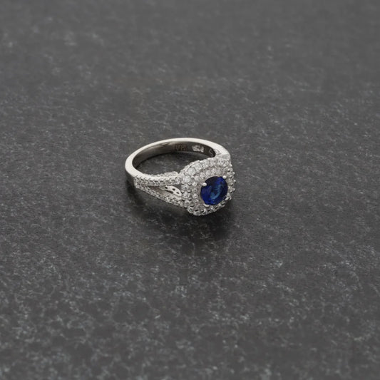 Sterling Silver 925 Faceted Dark Blue Topaz Women's Solitaire Ring - FKJRNSL8300