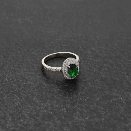 Sterling Silver 925 Faceted Green Topaz Women's Solitaire Ring - FKJRNSL8276