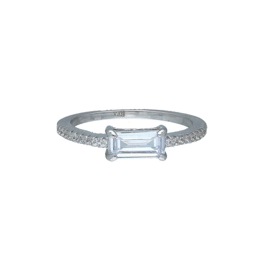 Sterling Silver 925 Step Cut Solitaire Ring - FKJRNSL11062
