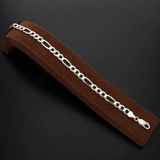 Sterling Silver 925 8 Inches Figaro Bracelet - FKJBRLSL9454