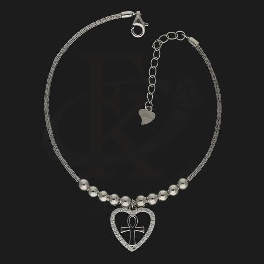 Sterling Silver 925 Cross In Heart Beads Bracelet - FKJBRLSL2369