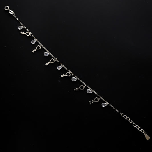 Sterling Silver 925 Dangling Key Charm Bracelet - FKJBRLSL10699