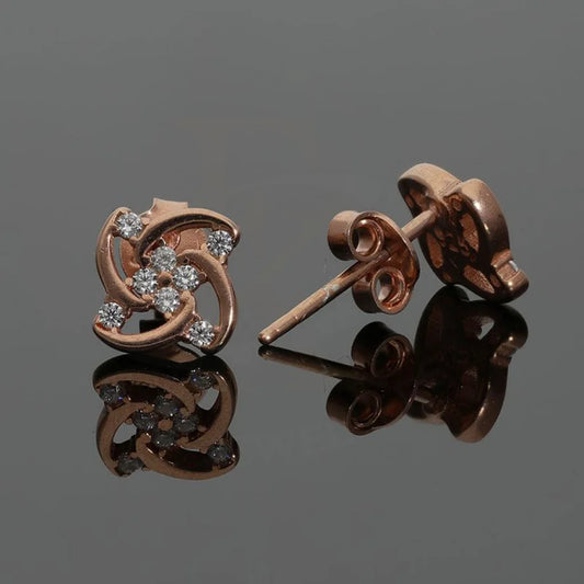 Sterling Silver 925 Rose Gold Plated Stud Earrings - FKJERNSL2945