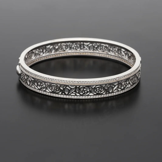 Sterling Silver 925 Antique Floral Pattern Bangle - FKJBNGSL7924