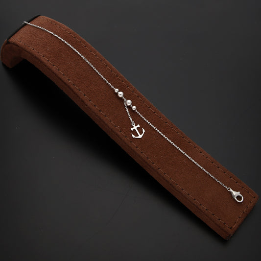 Sterling Silver 925 Hanging Anchor and Stud Balls Anklets - FKJANKLSL9489