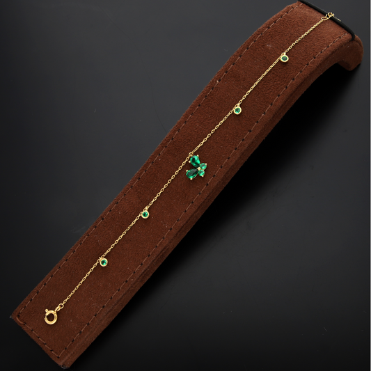 Sterling Silver 925 Green Butterfly Shaped Bracelet - FKJBRLSL9354