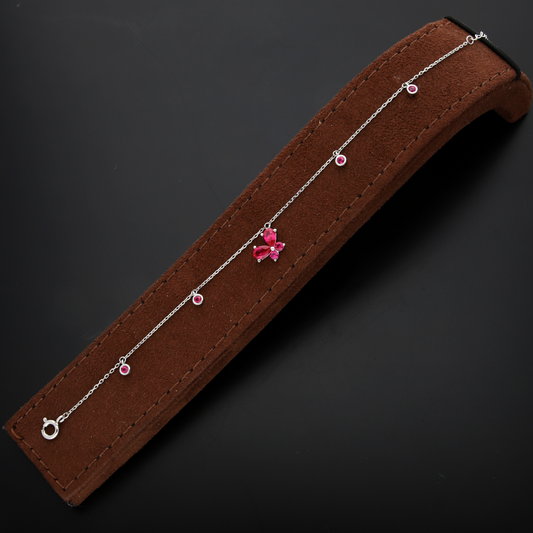 Sterling Silver 925 Pink Butterfly Shaped Bracelet - FKJBRLSL9355