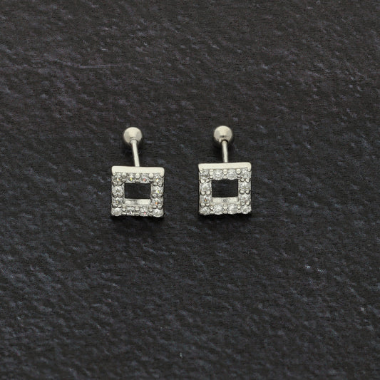 Sterling Silver 925 Crystal Hallow Square Shaped Earrings - FKJERNSL9400